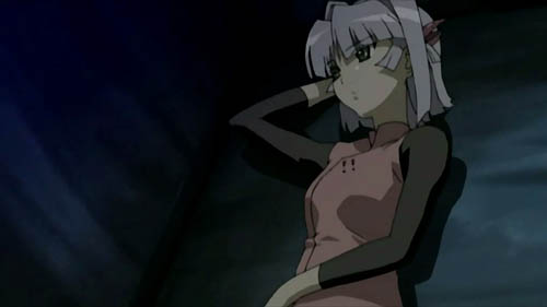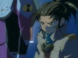 Episode 3 of Jinki: Extreme introduces us to the 'robot-girl' of the series Rui. Robot girls may also be classified as 'Rei-clones' (from Neon Genesis Evangelion). Either way she's your typical robot girl. No expression, same type of emotionless and cynical voice, and generally no personality whatsoever in an attempt to create a 'mysterious' personality.